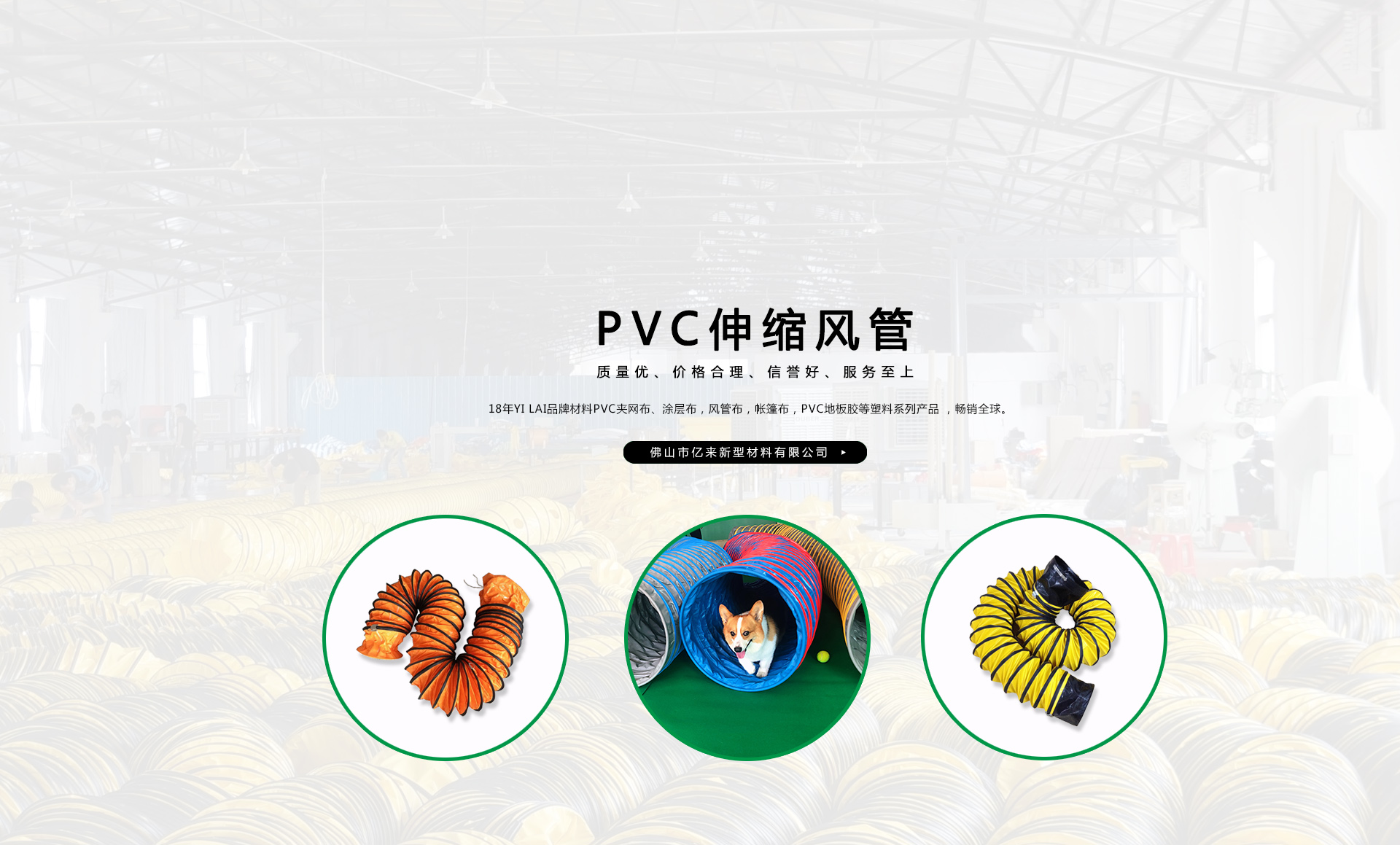 創(chuàng)建“YILAI品牌”近20年來,產(chǎn)品質(zhì)量穩(wěn)定提高,生產(chǎn)及經(jīng)營的產(chǎn)品包括PVC夾網(wǎng)布、PVC彩條布、PVC風(fēng)管布、PVC涂層布、PVC籬笆圍護欄布、PVC透明夾網(wǎng)布、PVC伸縮風(fēng)管、車縫風(fēng)管、寵物管、耐高溫風(fēng)管、地下室通風(fēng)管,保溫通風(fēng)管、空調(diào)排風(fēng)管、正負(fù)壓通風(fēng)管、三通/四通排風(fēng)管、防靜電風(fēng)管、隧道風(fēng)管、PVC地板膠等系列產(chǎn)品在市場上得到廣大客戶認(rèn)可,暢銷歐美、東南亞、非洲、中東等國外市場。